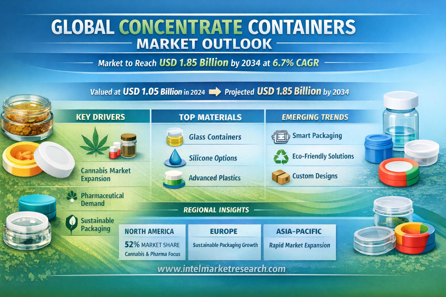 According to a new report from Intel Market Research, the global Concentrate Containers market was valued at USD 1.05 billion in 2024 and is projected to reach USD 1.85 billion by 2034, growing at a CAGR of 6.7% during the forecast period (2025-2034). This growth is driven by increasing demand for specialized packaging solutions across cannabis, pharmaceutical, and food & beverage industries, coupled with stringent regulatory requirements for product safety and sustainability.